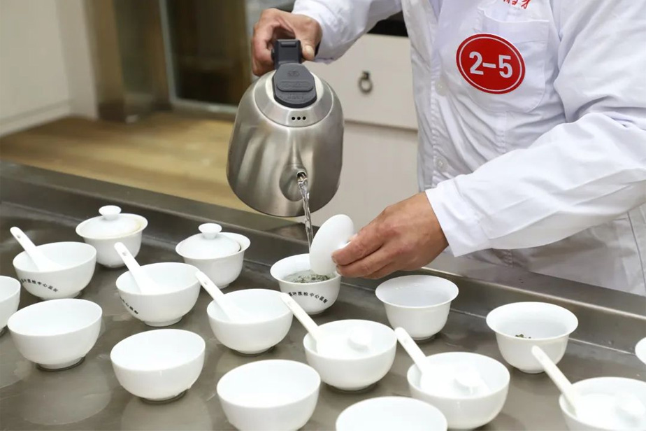 评茶员是评审人员用感官鉴别茶叶的过程。即审评人员运用正常的视觉、嗅觉、味觉、触觉的辨别能力,对茶叶产品的外形、香气、汤色、滋味及叶底等品质因子进行审评,从而达到鉴定茶叶品质的目的。评茶员广泛活跃于茶叶生产、加工、流通、贸易等领域,是茶叶行业发展不可或缺的技能型人才,是推动茶叶产业高质量发展重要的人力资源。