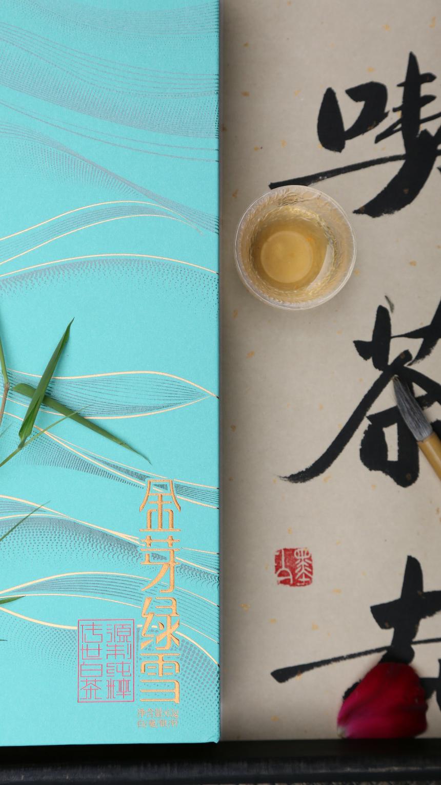 笑览古人青云路,启封金芽绿雪时 高雅的毫香赶走炙热的焦虑 初夏的凉风相拥银色的白毫 感知宇宙正在流动 在书简、茶盏与我之间