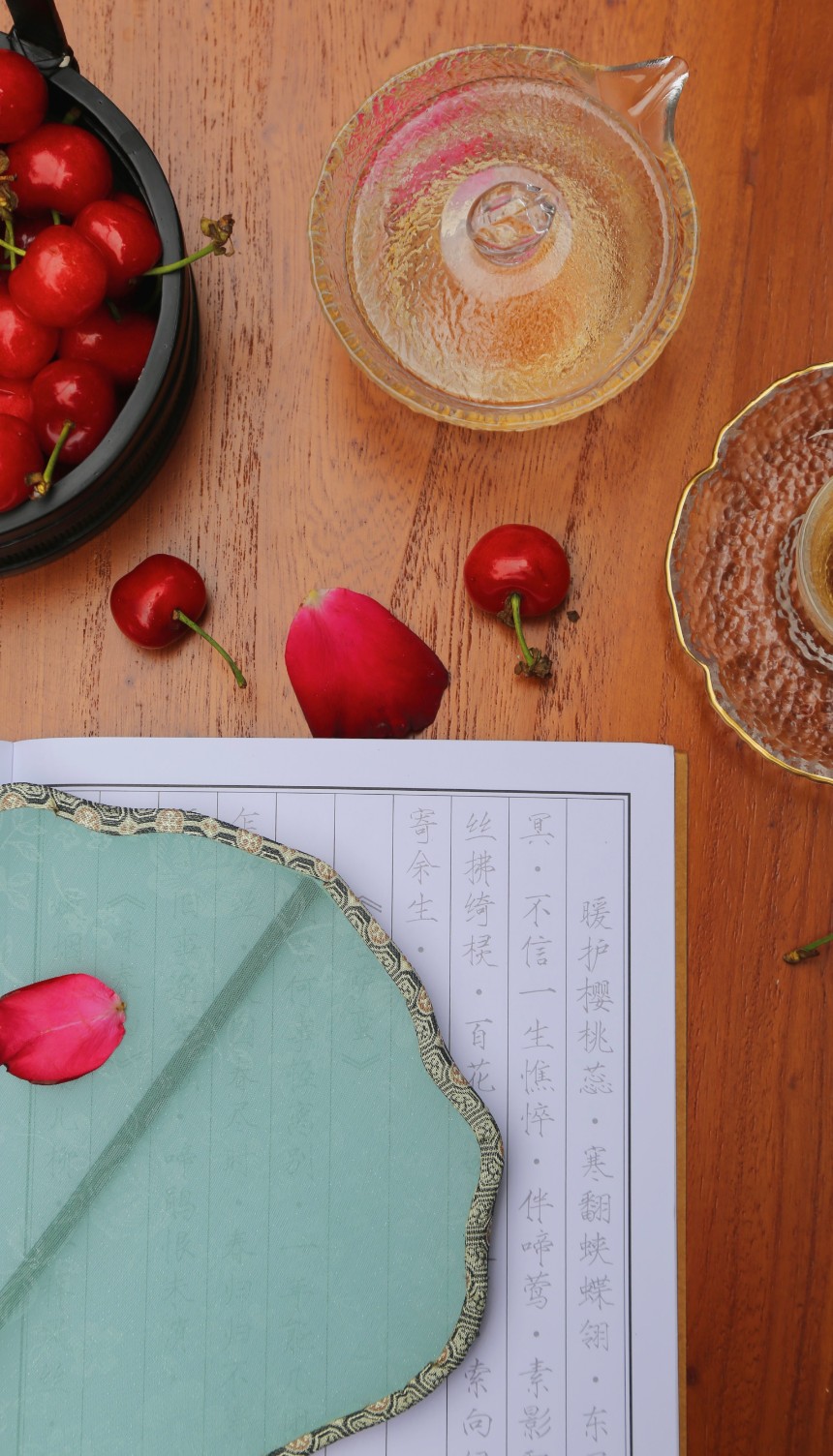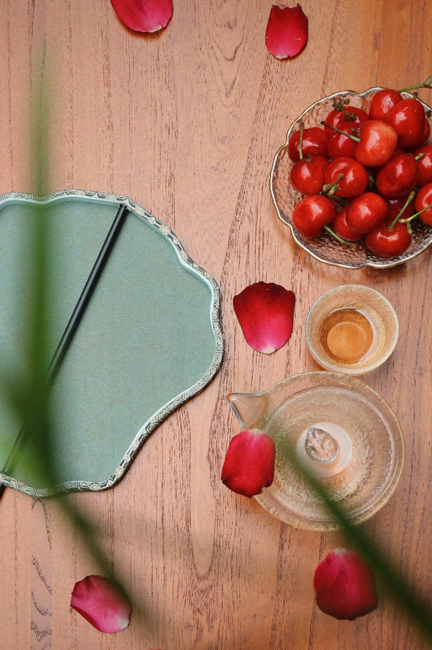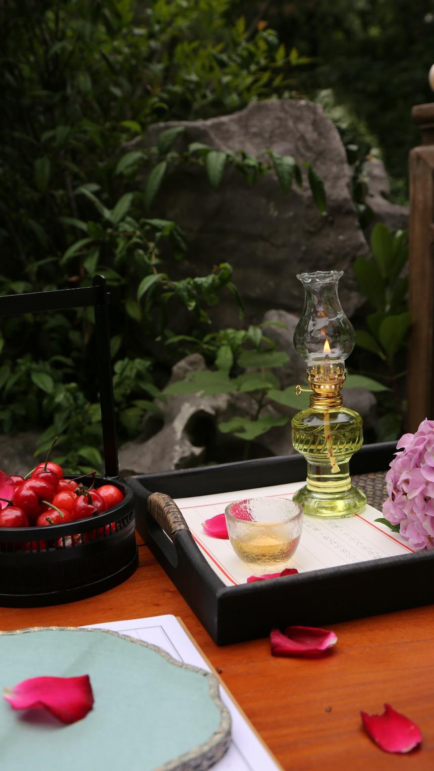 轻罗小扇、琉璃灯盏 正是“琴棋书画诗酒茶”时 夏日光阴掉落进杯盏 惊起圈圈涟漪,遗留暗香浮动