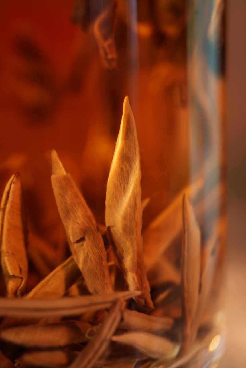 | 2020年白毫银针 | 匀整、毫芯稍显 | 陈纯 | 橙黄明亮 | 陈纯 | 匀整,较嫩 |