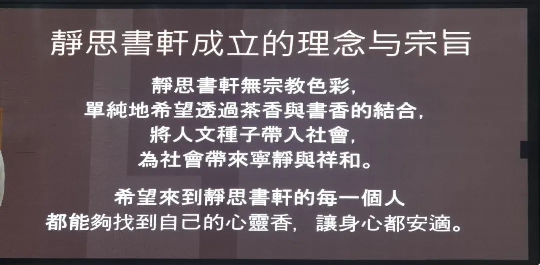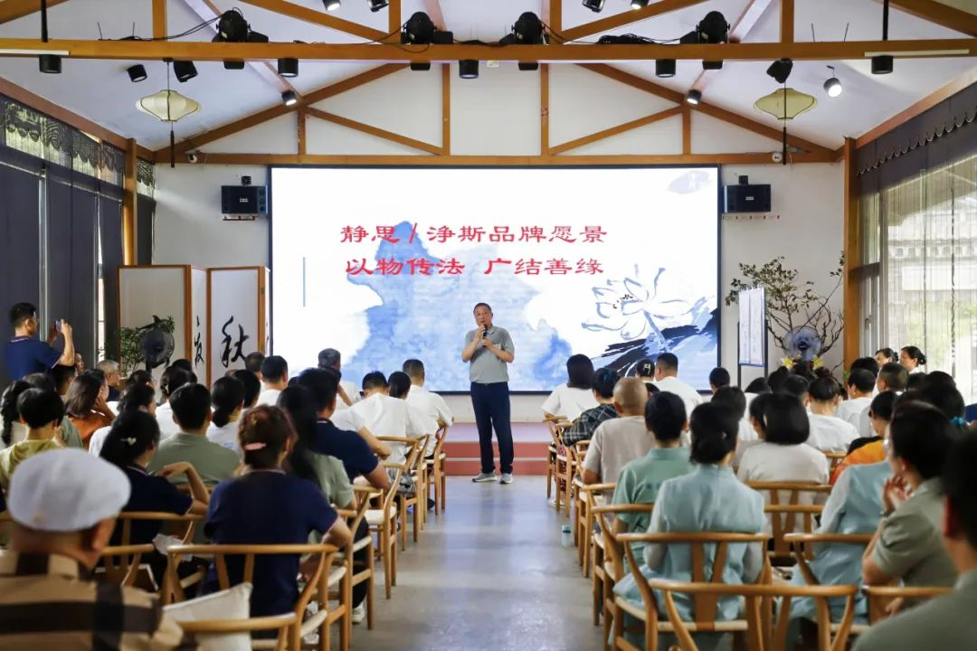 8月11日下午至13日,“静思人文”资深志工为主讲人,分享“静思人文”。通过“什么是人文”、“人文之美”、“什么是静思人文”、“静思/浄斯与绿雪芽品牌故事”等一系列静思·浄斯人文研习课题循序渐进地解析和深耕“静思人文”,传递净化人心的理念,让心灵沐浴在清流中,同时促进学员深刻理解【绿雪芽】品牌文化内涵;以“静思茶书会”、“圆缘茶会”的形式以茶会友,广结善缘,期待每一个接触到“静思”的人生命因此而蜕变,希望【绿雪芽】成就我们的美好生活。