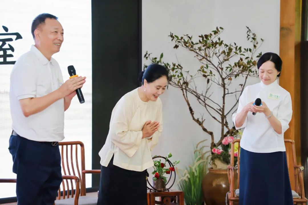 “静思会客室”上,林有希与施丽君分享家庭、事业及人生感悟;分享与静思的结缘,以及绿雪芽品牌与“静思”一起结善缘、回报社会的愿望