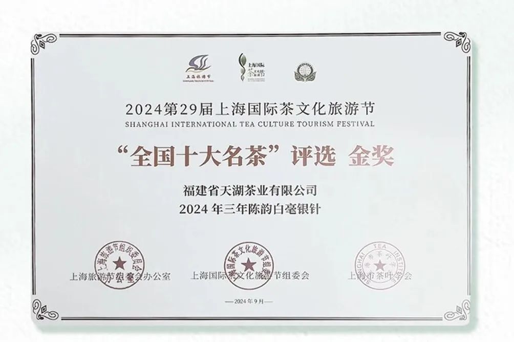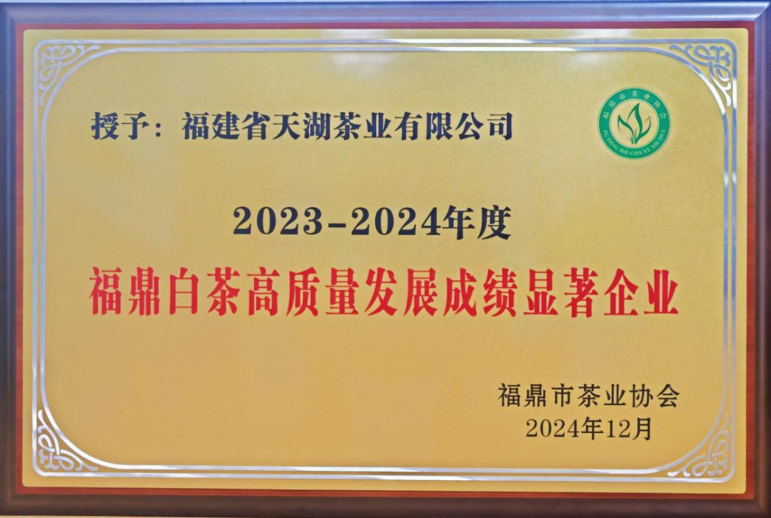 福建省天湖茶业有限公司、福建绿雪芽茶业有限公司、福建太姥山名茶有限公司荣膺福鼎市2024年度“功勋企业”称号。