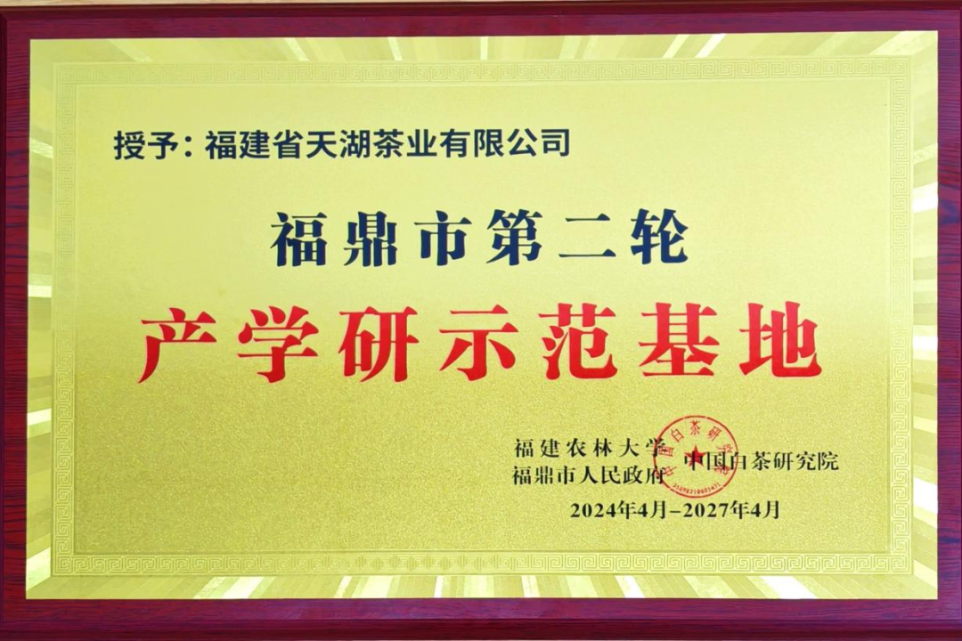 1 天湖茶业被福建农林大学、福鼎市人民政府、中国白茶研究院评为福鼎市第二轮“产学研示范基地”。